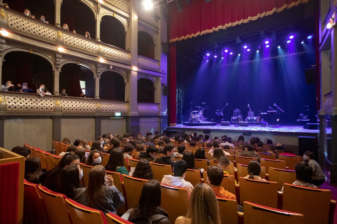 Cumprindo todas as normas de acesso, de acordo com as orientações da DGS para os espetáculos em recintos fechados, os alunos do ensino secundário, experienciaram o “ritual” da vinda ao Teatro, adquirindo o seu bilhete, desinfetando as mãos, sendo dirigidos ao seu lugar pelos assistentes de sala e, mais importante, desfrutando do espetáculo musical protagonizado por jovens músicos.