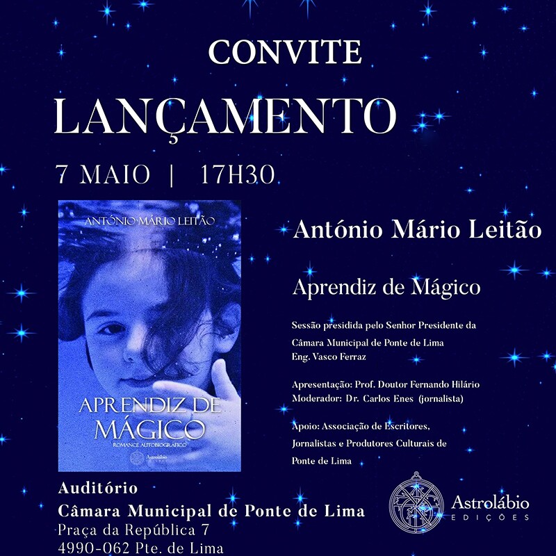 O Município de Ponte de Lima vai acolher a apresentação do livro "Aprendiz de Mágico" da autoria de António Mário Leitão, no próximo sábado, dia 7 de maio de 2022, pelas 17h30, no auditório da Câmara Municipal de Ponte de Lima.