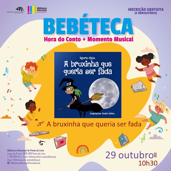 A próxima ação com histórias decorrerá no dia 29 de outubro de 2022 e contará com uma sessão de leitura encenada do conto “A bruxinha que queria ser fada”, da autoria de Roberto Klotz, seguida de um momento musical.
