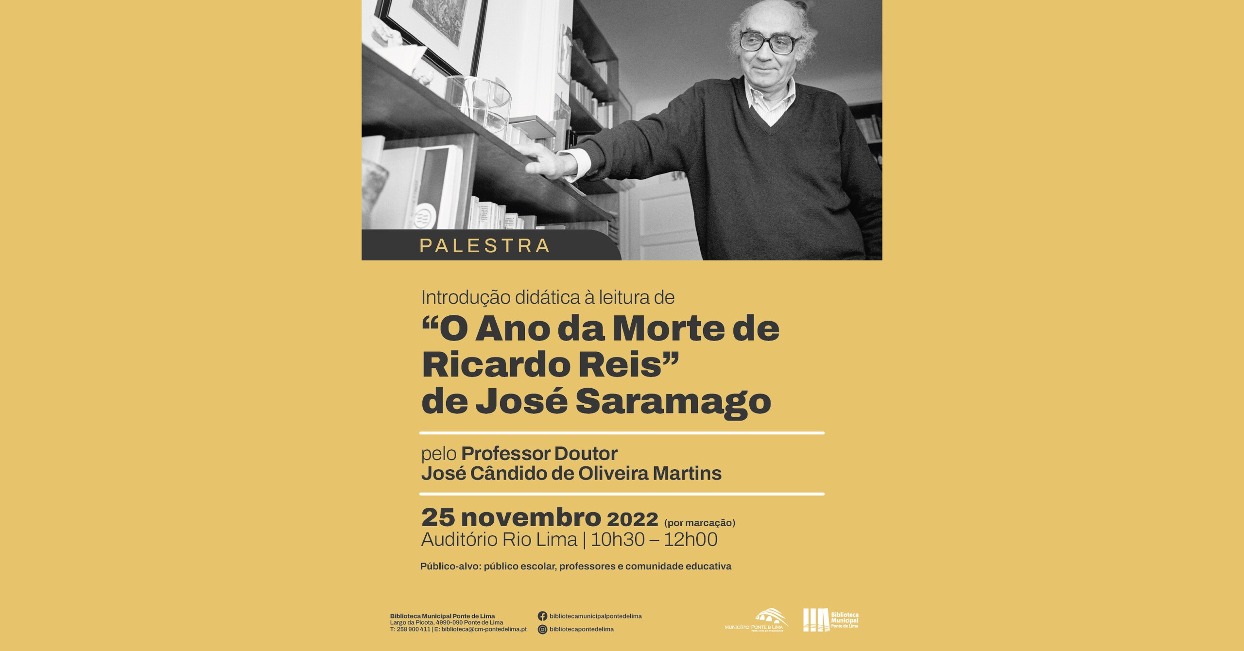 No âmbito das comemorações do Centenário do nascimento de José Saramago, o Município de Ponte de Lima vai promover uma palestra direcionada para alunos do ensino secundário e para professores, intitulada "Introdução didática à leitura de 'o Ano da Morte de Ricardo Reis' de José Saramago".