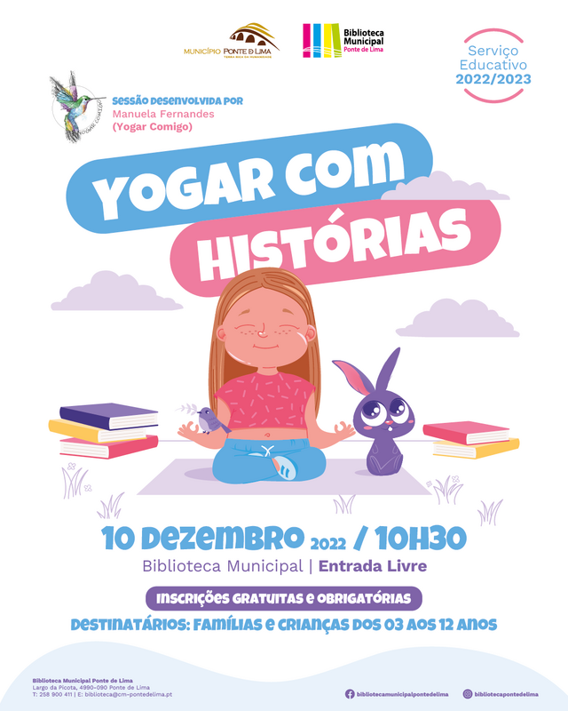 O Município de Ponte de Lima dá continuidade às sessões de "Yogar com Histórias" na Biblioteca Municipal e vai dinamizar mais uma edição no próximo dia 10 de dezembro, sábado, às 10h30.