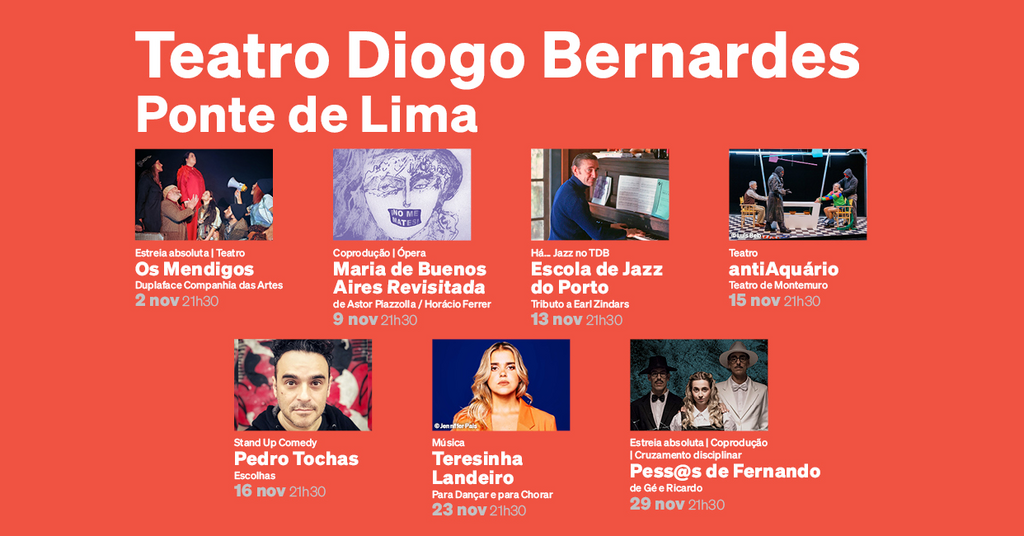 Em novembro, o Município de Ponte de Lima e o Teatro Diogo Bernardes apresentam um conjunto de espetáculos, dos quais merecem especial destaque a coprodução "Maria de Buenos Aires Revisitada de Astor Piazzolla/Horacio Ferrer", na área da ópera e a coprodução "Pess@s de Fernando", Gé & Ricardo, no Cruzamento disciplinar.