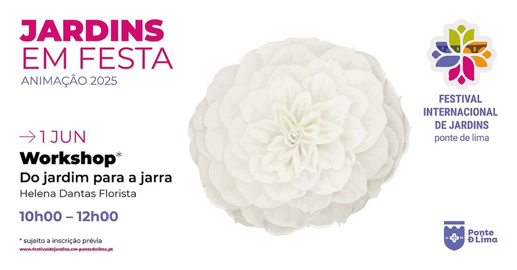 Os workshops abrangem áreas como florística, fotografia, ilustração científica, decoração e artes manuais, com a orientação de artistas e profissionais como Helena Dantas, Duarte Fernandes, o Atelier Entrópico e o Ateliê Ninfa Perlada. Algumas atividades requerem inscrição prévia, disponível através do formulário: https://www.cm-pontedelima.pt/p/workshops-jardins-em-festa.