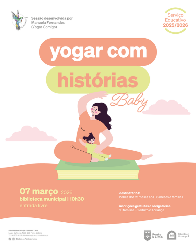 No dia 7 de março de 2026, das 10h30 às 12h30, a Biblioteca Municipal de Ponte de Lima volta a abrir portas às famílias para mais uma sessão dedicada aos mais pequenos, entre os 12 e os 36 meses.